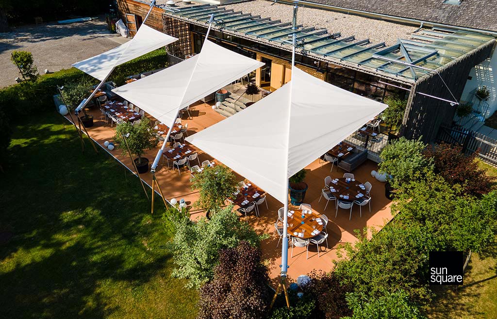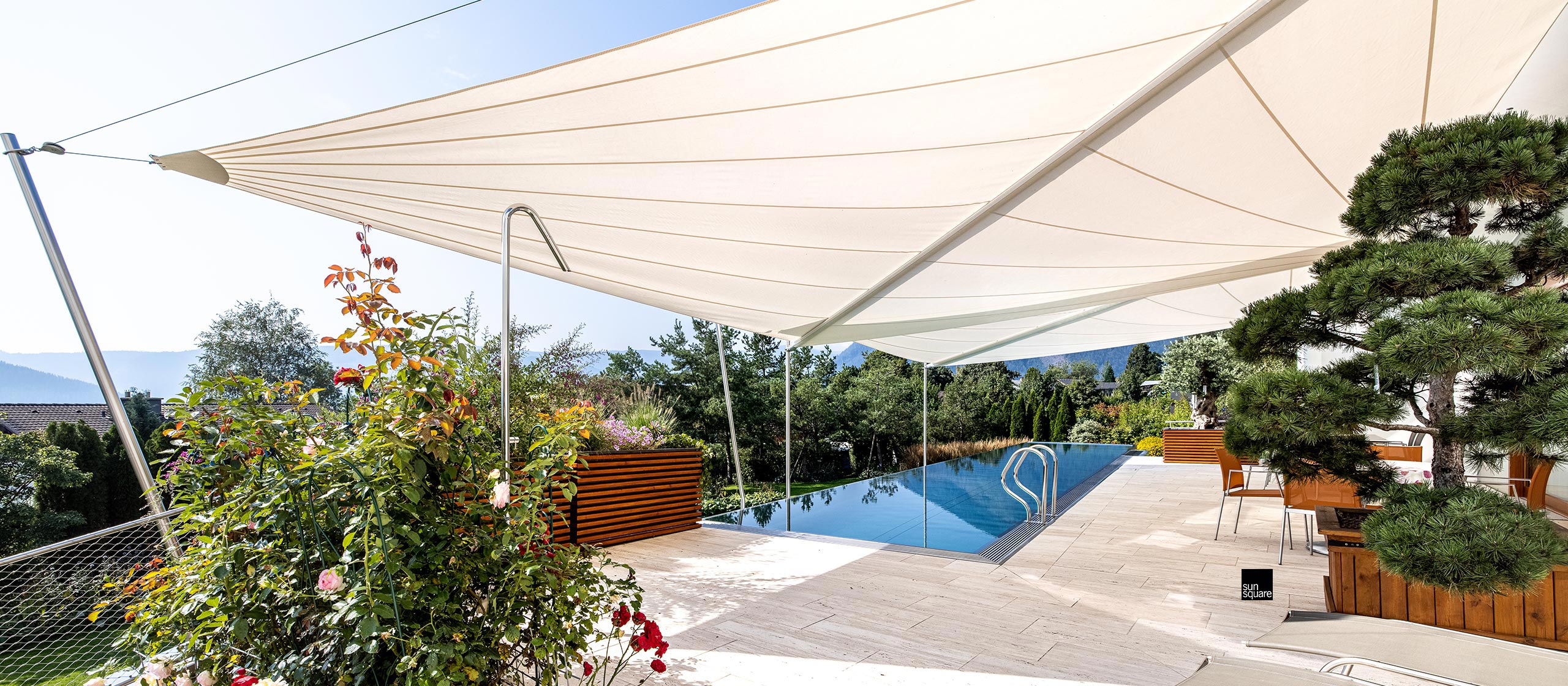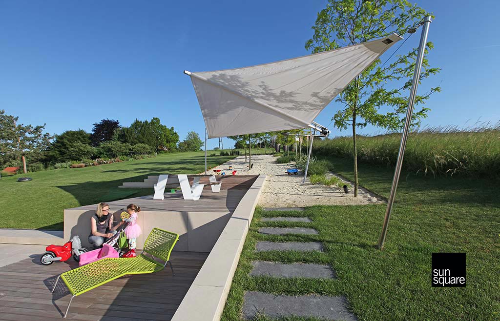 Das freischwebend wirkende Sonnensegel eröffnet zahlreiche neue Möglichkeiten.