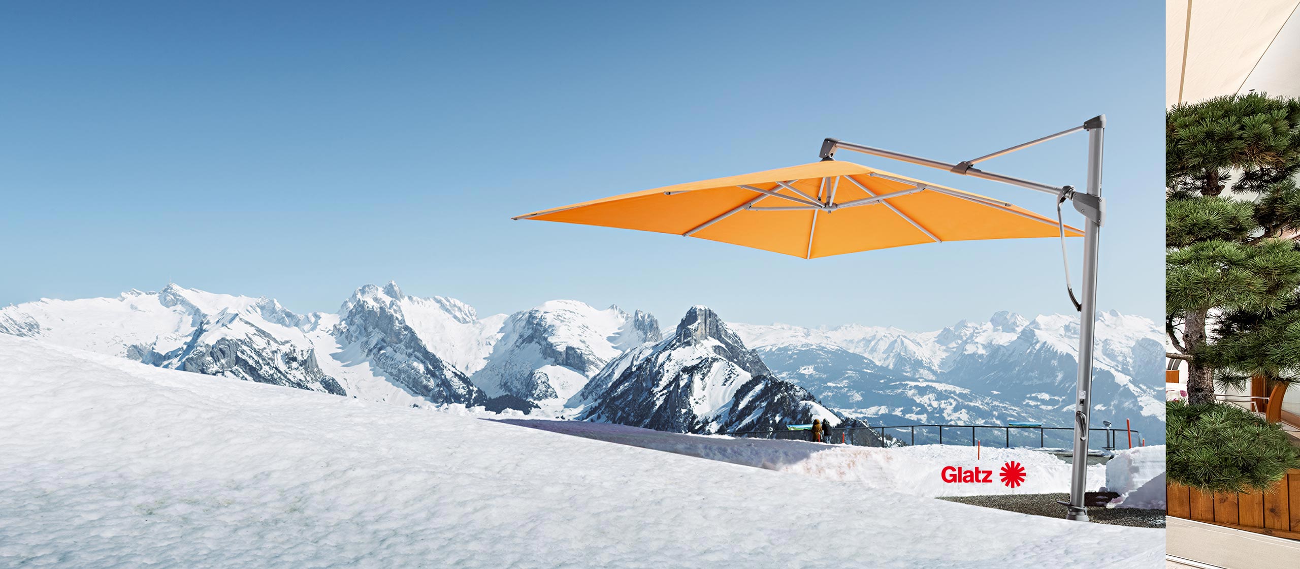Freistehender Sonnen- und Regenschutz. Schaffen Sie mit der schlanken Silhouette des SHADECUBE einen edlen Blickfang.