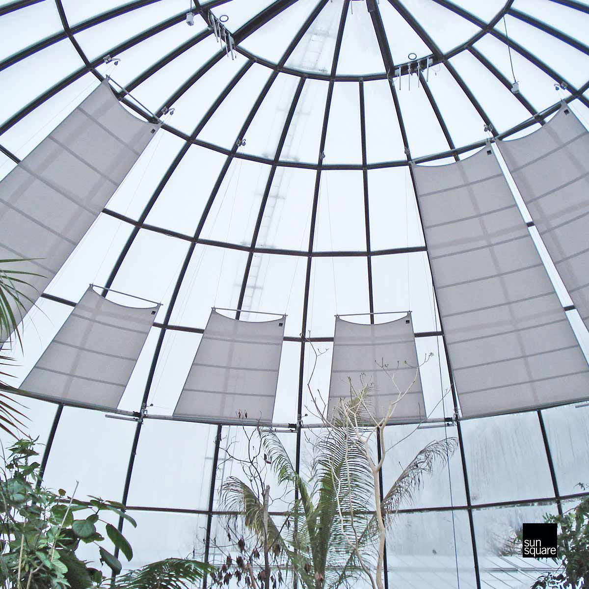 Die Wall-to-Wall Ausführung fügt sich freischwebend als Segelmembrane in jede Gebäude-Architektur ein.