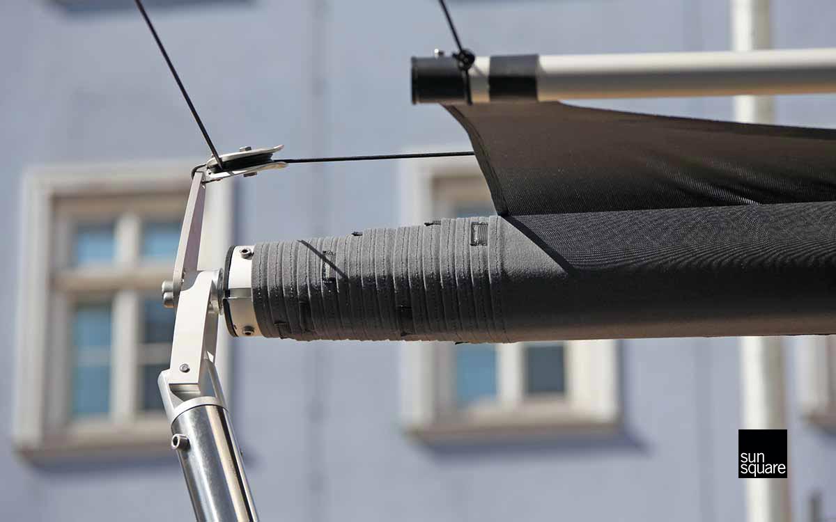 System für größere Abschattungsflächen - Die Tuchwelle ist das Herzstück der SHADE Schatten-Systeme.