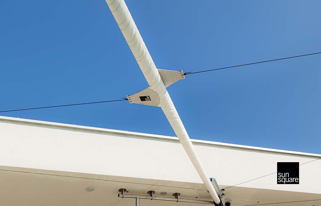 Mit dieser Technik können Sonnensegel bis zu einer Größe von 70m2 betrieben werden.