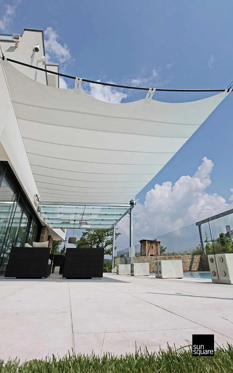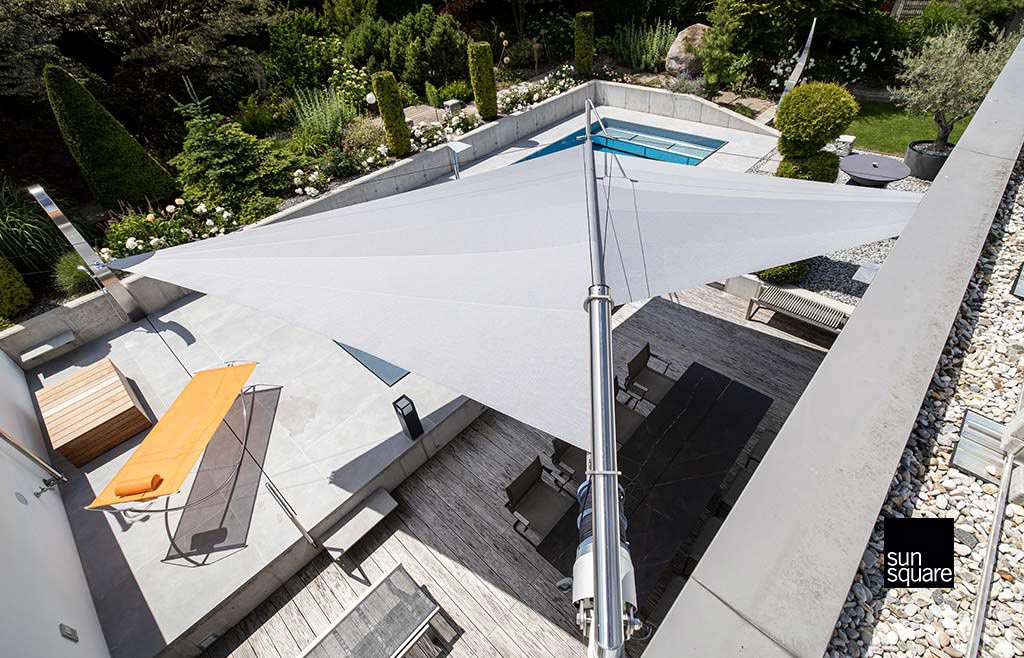 Das freischwebend wirkende Sonnensegel eröffnet zahlreiche neue Möglichkeiten.
