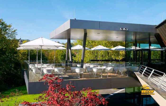 Insbesondere für die Beschattung von größeren Flächen, etwa größerer Außenflächen von Restaurants, ist eine intensive Planungsphase wichtig. Nur so lässt sich der optimale Sonnenschutz vor Ort realisieren.