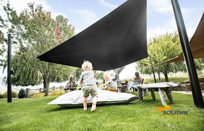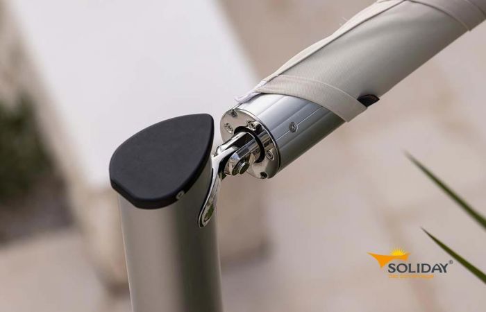 Das clevere Detail macht´s aus. Die Möglichkeit, die Flügel des Sonnensegels in der Höhe und der Neigung zu verstellen, bringt im Alltag einige clevere Funktionen mit sich. So können Sie die Neigung des Segels individuell an den Stand der Sonne anpassen und dadurch die Position des Schattens bestimmen. Als Nebeneffekt dient die Neigung des Segels auch perfekt als Sichtschutz vor ungeliebten Blicken und als Hilfe für einen perfekten Regenwasserablauf (SOLIDAY C/CS).