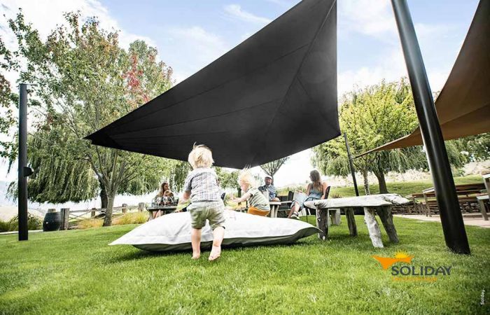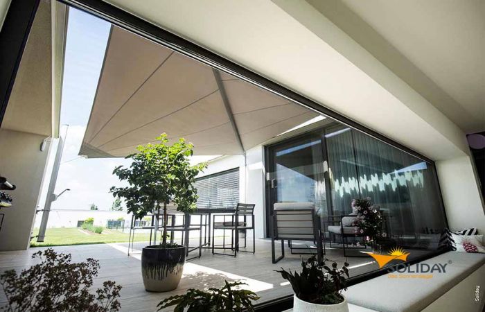 Soliday-C und Soliday CS sind Beispiele für elektrische Sonnensegel-Systeme der Marke Soliday. Beides sind automatisierte und funkgesteuerte Systeme. Die C-Variante kann eine Fläche bis zu 85 m² und die Sonnensegel CS können bis zu 65 m² überdecken. Ausgestattet sind sie mit einer Technologie, mit der sie im offenen Zustand stets gespannt bleiben, also nicht durchhängen. Soliday ist Qualität aus Österreich eine Marke der österreichischen Plaspack Netze GmbH.