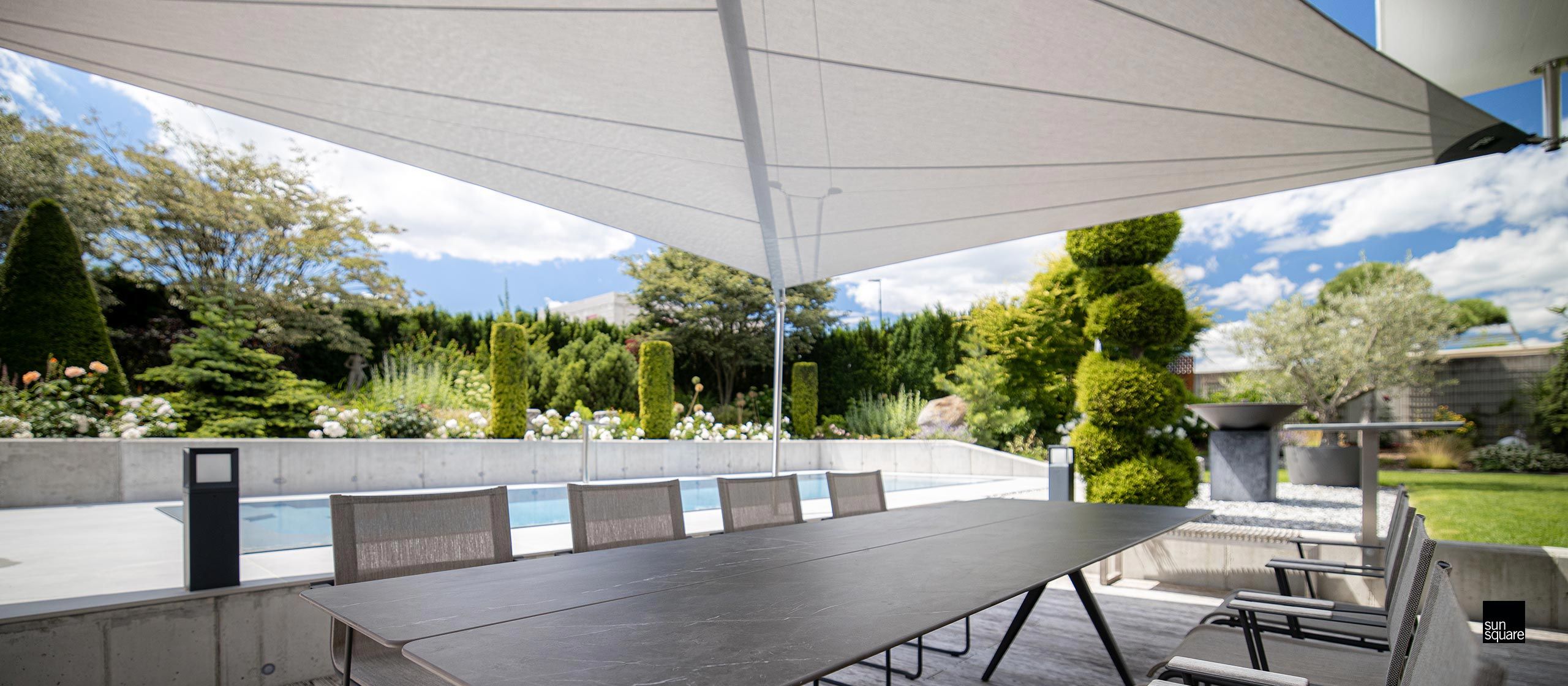 SunSquare Sonnensegel sind funkgesteuert, vollautomatisch und mit einer Windschutzfunktion ausgestattet. Sie schließen bei Sturm automatisch, was das Sonnensegel schützt. Die Marke verwendet High-End-Segeltücher und Edelstahl der höchsten Güteklasse (Marine-Edelstahl) für ihre Produkte. Lernen Sie herausragende elektrische Sonnensegel wie die der Modellserien SQK, AX und Fold & Roll kennen. Sie sind die Basis für einen individuellen Sonnenschutz, denn SunSquare-Sonnensegel werden individuell geplant und für Sie hergestellt.